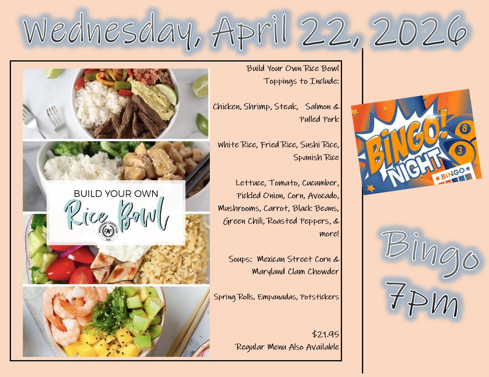 Build Your Own Rice Bowl and Bingo